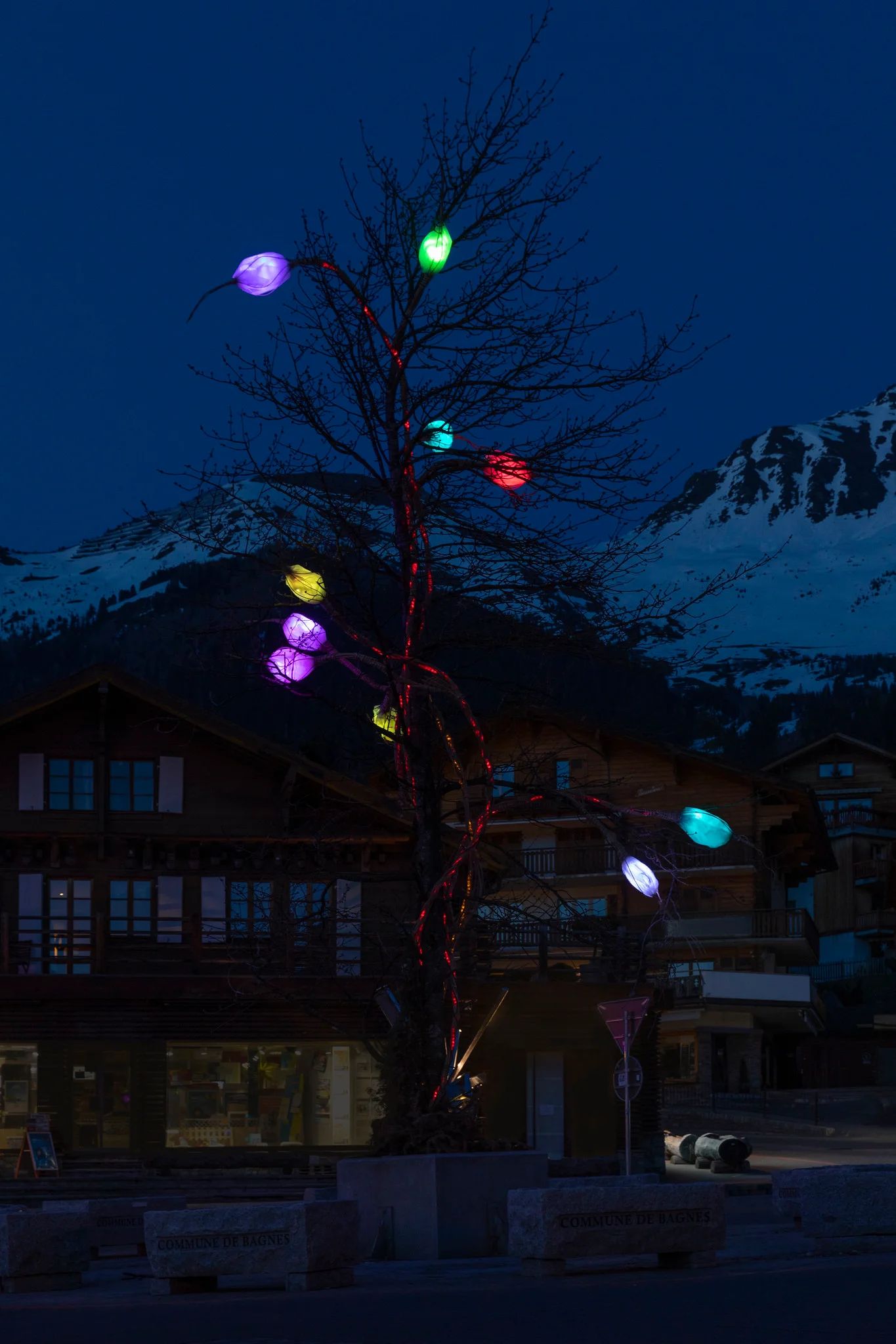 Mobilier urbain : sont les illuminations des arbres, des fontaines, des bancs et des œuvres intérieurs des giratoires ou encore des bornes au sol qui délimitent la chaussée.