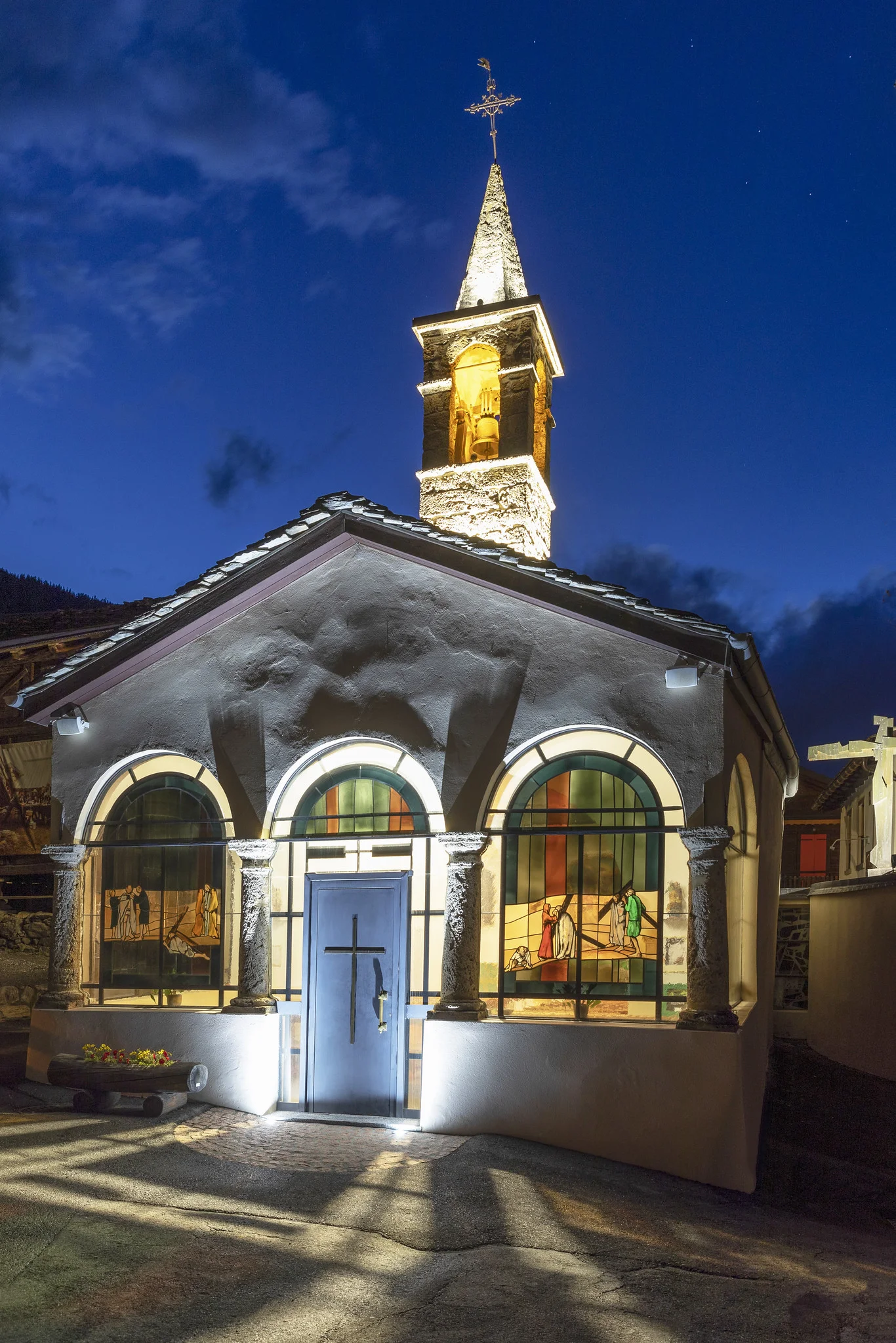Eclairage patrimonial : sont les illuminations et mettre en valeur des bâtiments ou des monuments (Chapelle, églises, bâtiments communaux et fresques)