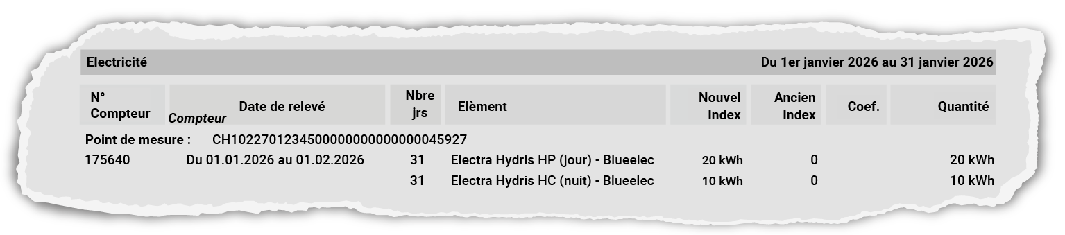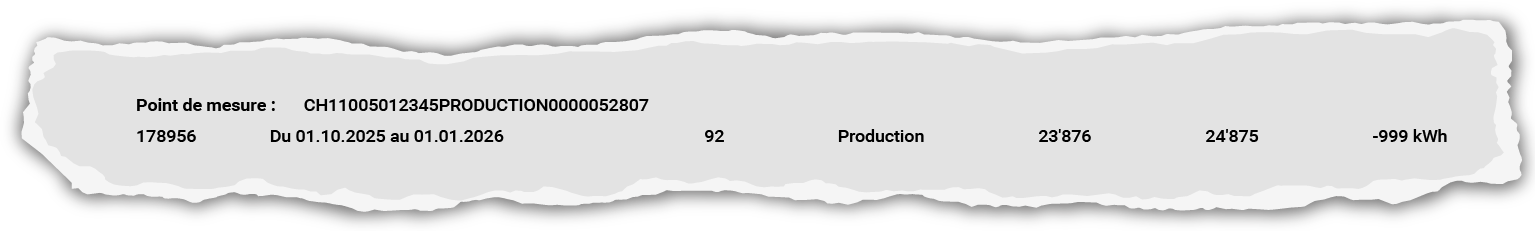| – 1’000 kWh | Nombre de kWh réinjectés sur le réseau. |