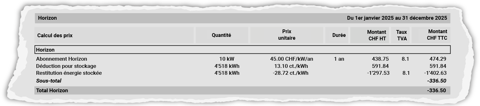 Si vous stockez votre énergie avec Horizon, une section complémentaire est présente sur votre facture